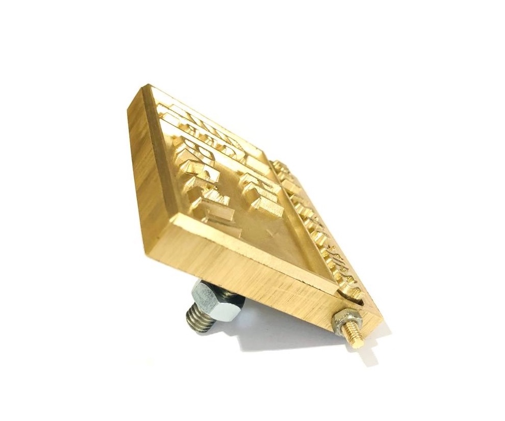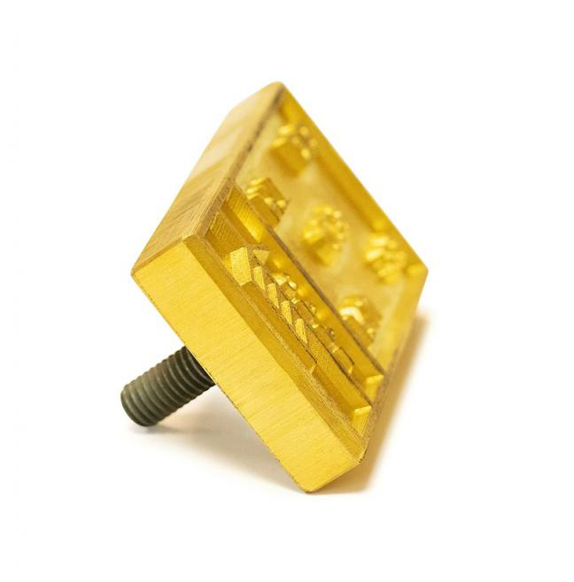 Более дешевый вариант изготовления - на деревянной ручке с металлическим основанием. Клеймо нагревается от огня в течение 7-9 минут, после чего наносятся отжиги. Данный вариант удобен при создании до 30 отжигов в сутки. Для исключения вероятности выгибания латунного основания изготавливается усиление. Усиление - металлическое основание, установленное на клейме. Данное основание позволяет повысить жесткость изделия в 4 раза.